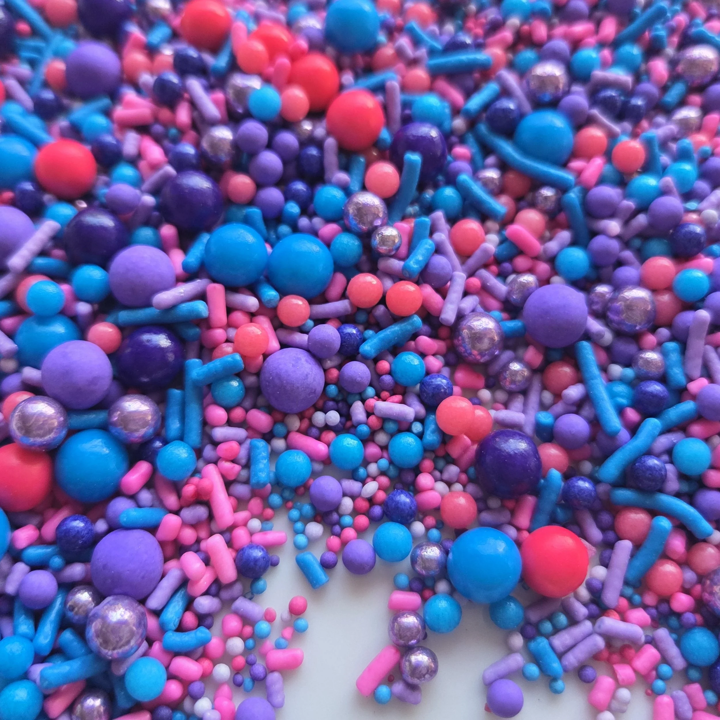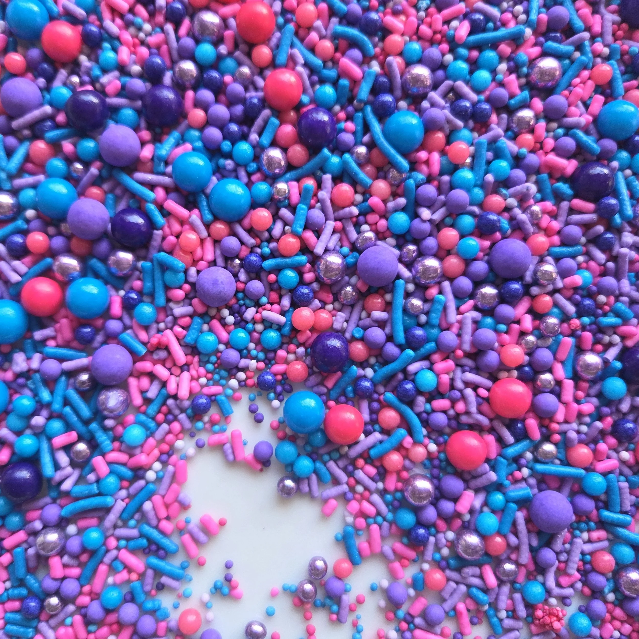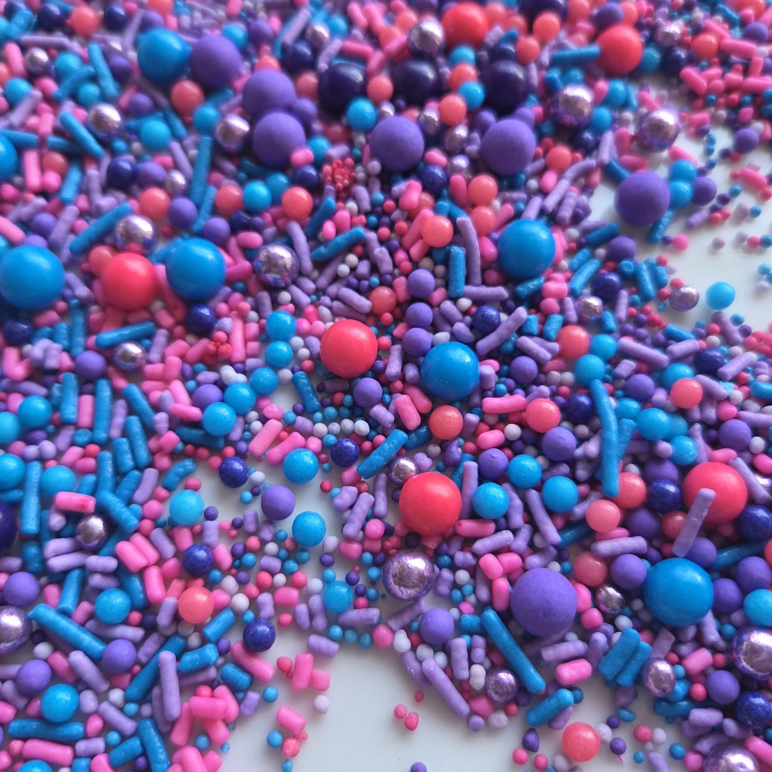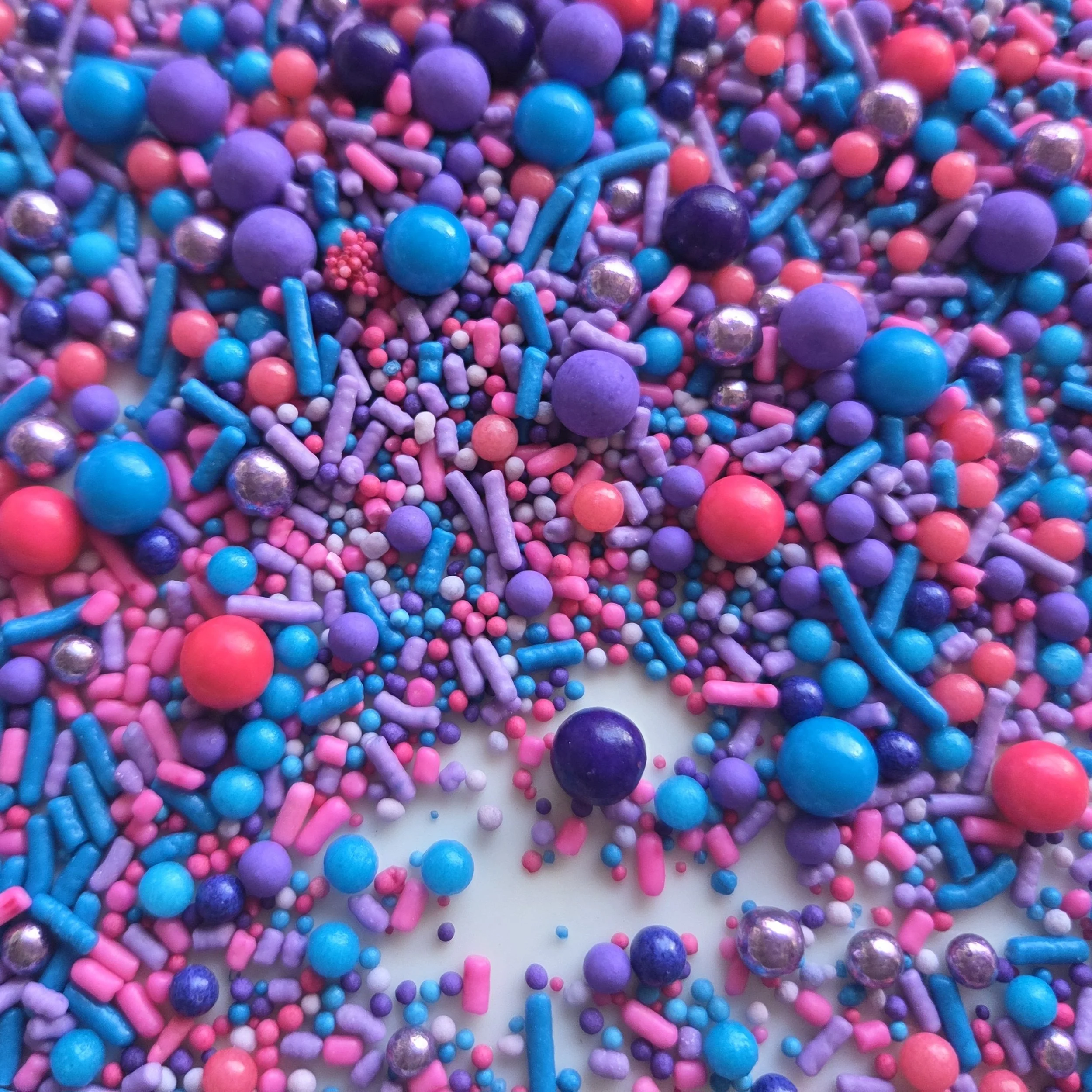 Hand mixed with love by us using sugar pearls 4mm-8mm, non pareils and jimmies.
