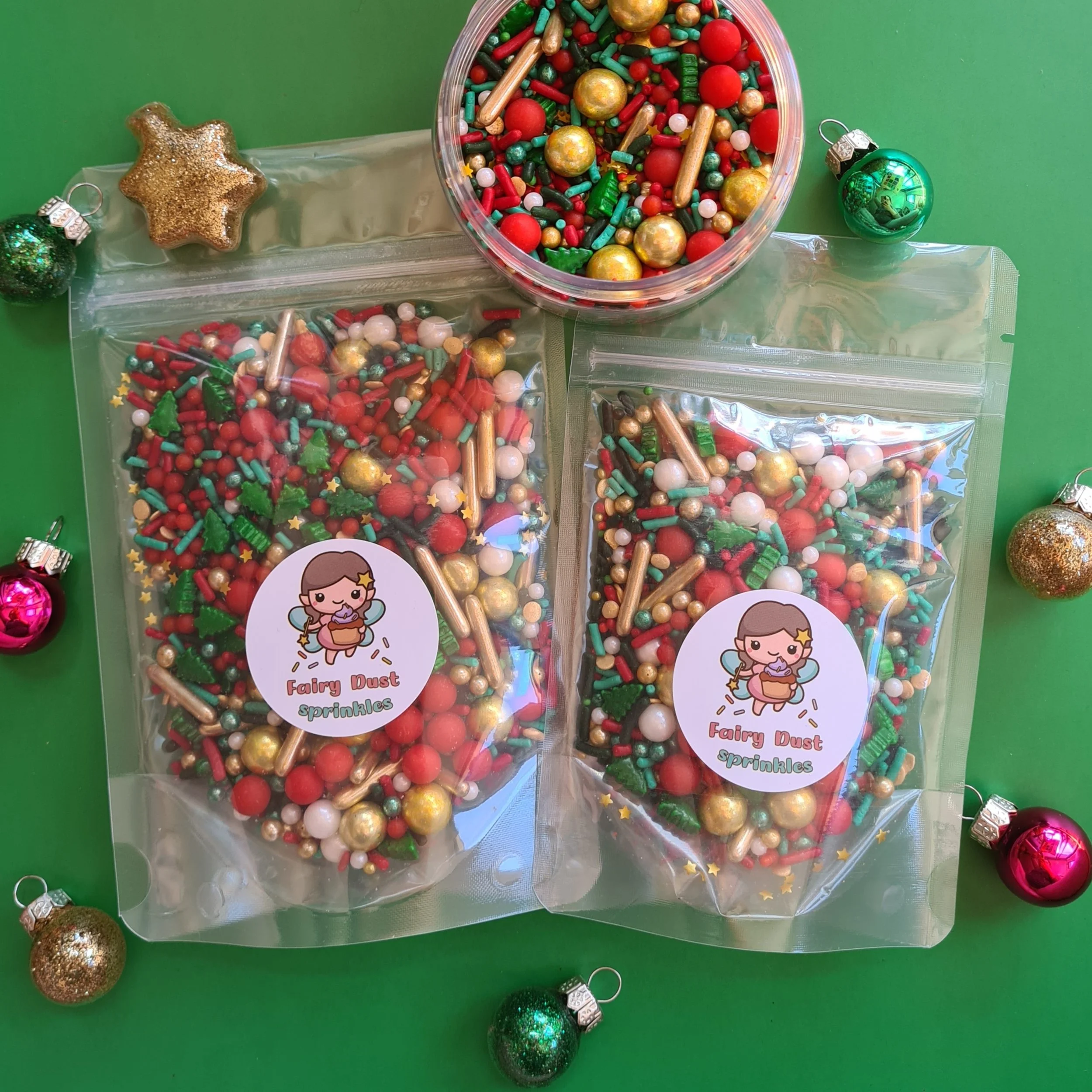 Spread the holiday Christmas cheer with our 'Christmas Cheer’ sprinkles! Featuring traditional green and red with pops of gold and white - perfect for all your Christmas baking and treats! Sprinkle on cupcakes, cake, cookies, cake pops, slices, chocolate bark, desserts, and anything else that needs a little fairy dust magic added!